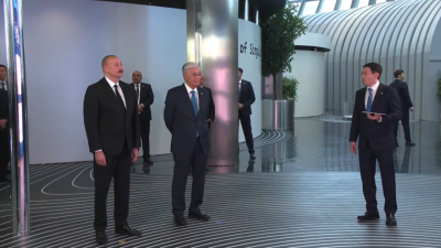 Қасым-Жомарт Тоқаев пен Ильхам Әлиев Астанадағы Alem.AI халықаралық жасанды интеллект орталығын аралады. ...